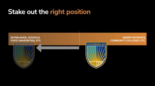 Given careful consideration of student segments and health institution needs, the Chamberlain brand positioning encompassed a singular focus on nursing where: